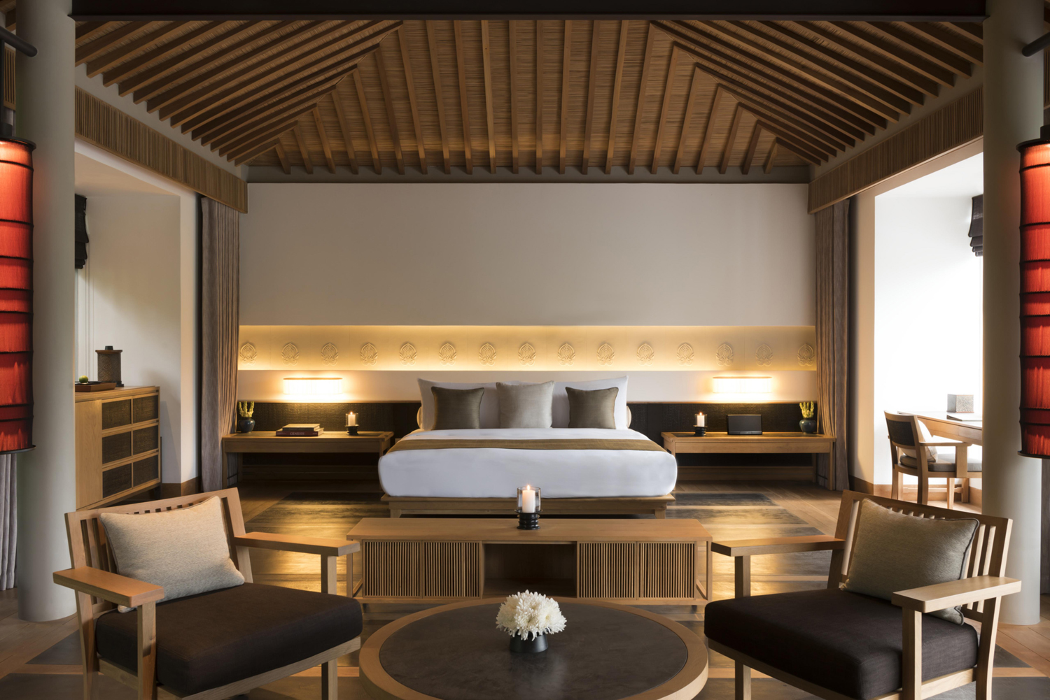 Amanoi La mejor cadena del mundo, Aman, cuenta en Vietnam con este espectacular hotel de cinco estrellas delante del mar. Su nombre, derivado de las palabras Aman: paz y Noi: lugar, nos da una idea de las características de este refugio situado delante de una playa de arena blanca en la impresionante bahía Vinh Hy.
