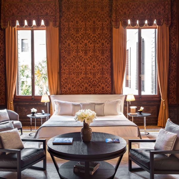 El palacio en el que se encuentra el hotel Aman, el Palazzo Papadopoli, fue construido en 1550 por el arquitecto Gian Giacomo de Grigi, como encargo de la familia Coccina. El hotel tiene vistas al Gran Canal, en San Polo, el más pequeño de los 6 distritos de Venecia, llamado así en honor a la Iglesia de San Polo, una de las partes más antiguas de la ciudad, famosa por sus palacios, su mercado y sus iglesias. El hotel se compone por 24 habitaciones con un diseño y mobiliario único.