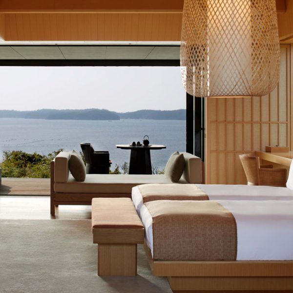 Amanemu evoca la antigua tradición japonesa de onsen utilizando aguas termales ricas en nutrientes para proporcionar un retiro contemplativo y restaurador. Se encuentra en el parque Nacional Ise-Shima en la península de Kii, a orillas de la bahía Ago, conocida como la bahía de las perlas.