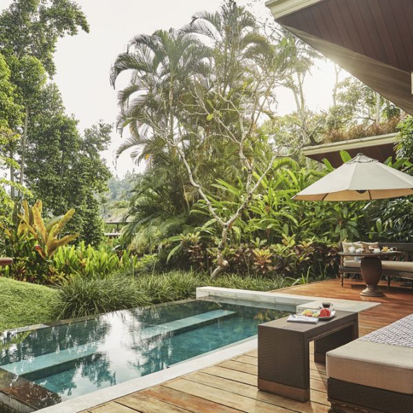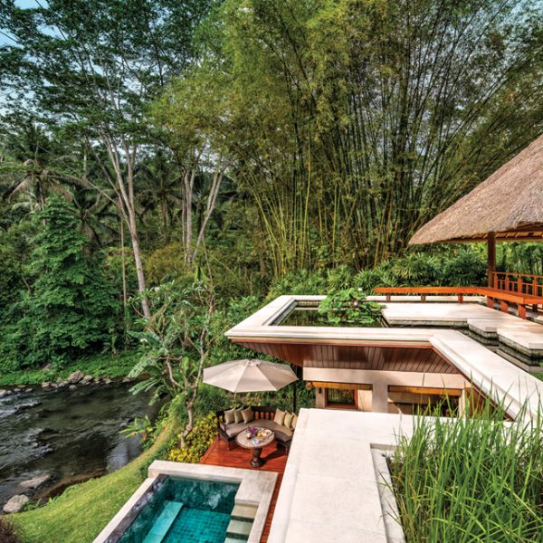Entre imponentes arboles, arrozales escalonados y encantadores jardines, este Resort es un santuario verde junto al río, bañado en belleza y pureza.