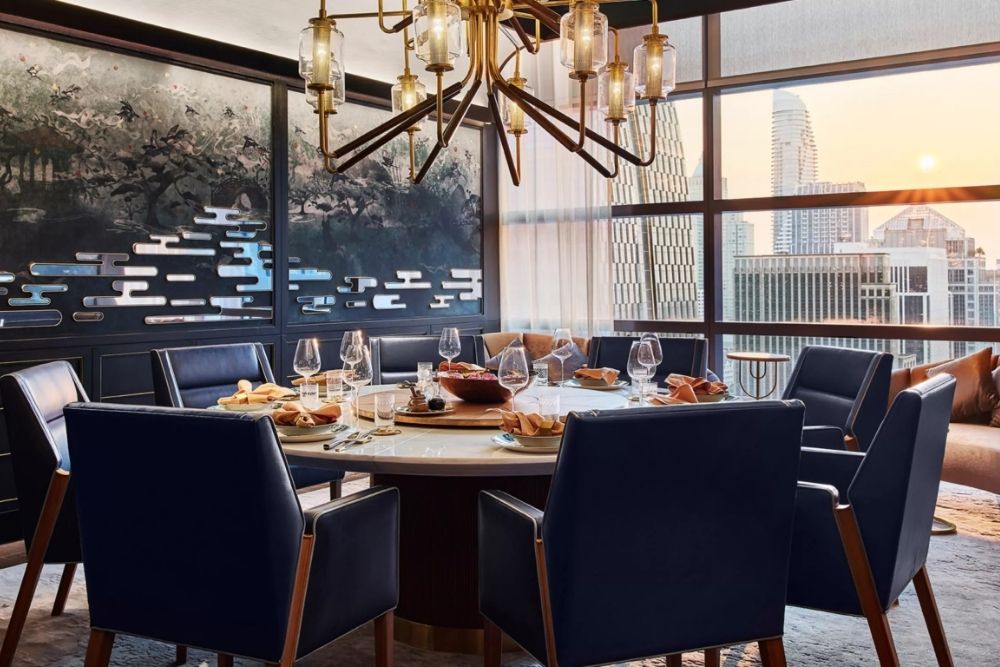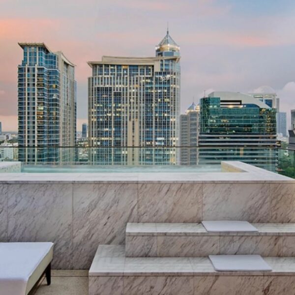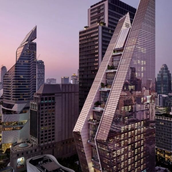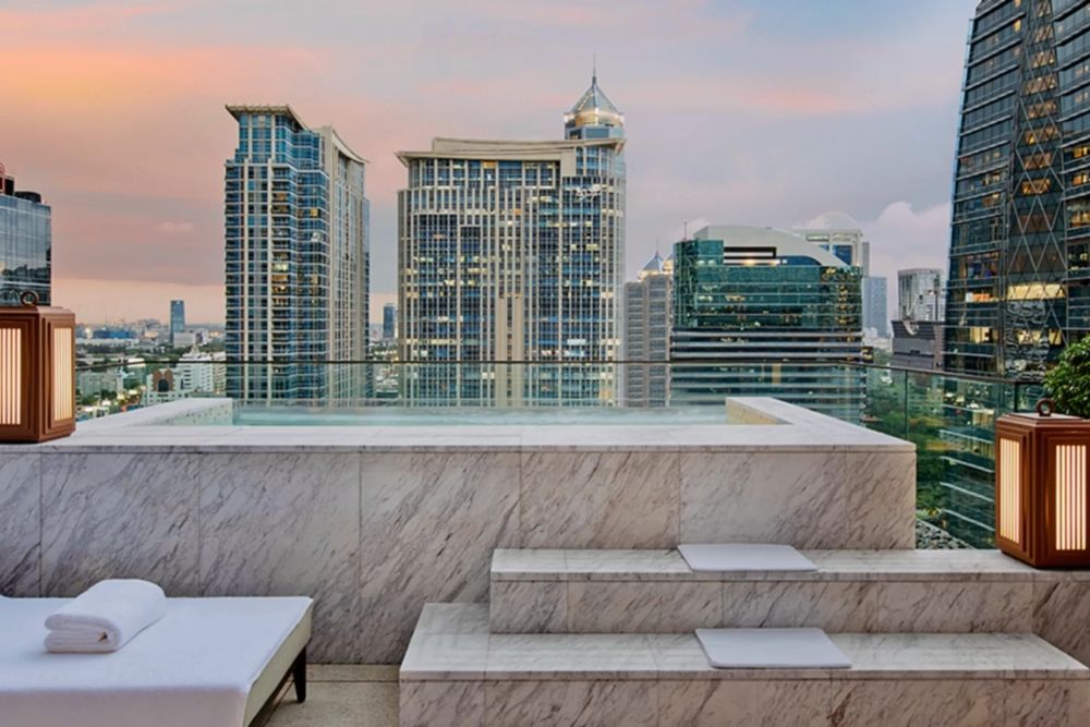 Rosewood Bangkok es un hotel de lujo con 30 pisos con una ubicación privilegiada en el corazón de la ciudad, sobre Ploenchit Road y con conexión directa a la estación de tren. Destaca por su diseño arquitectónico contemporáneo y sorprendente.