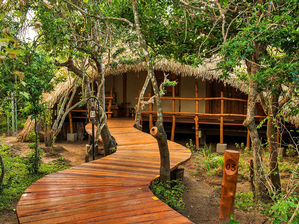 Su nombre proviene de los espacios que los habitantes de Yala han utilizado para cultivar en la jungla «chena», ahora podemos disfrutar de Uga Chena Huts. Entre la jungla tropical y las dunas, con vistas al mar y conexión directa con la fauna local.