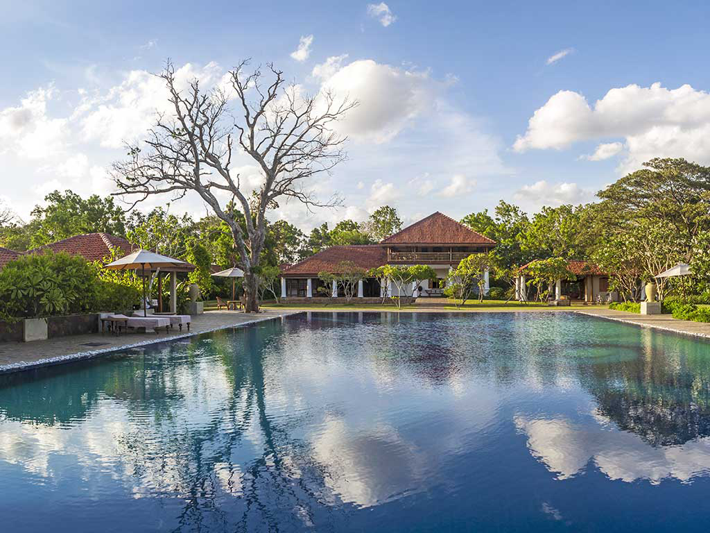 Sus 20 chalets están repartidos en 58 acres de tierra, su edificio principal tiene 150 años y está reformado respetando su aspecto original. Uga Ulagalla es miembro de Small Luxury Hotels of the World, un hotel perfecto para visitar los lugares más interesantes de este país.