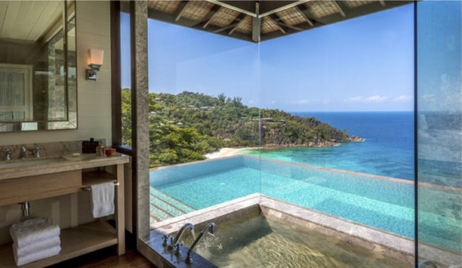 Four Seasons Seychelles Four Seasons Seychelles se encuentra a 30 minutos del Aeropuert Internacional de Mahé, desde el resort los huéspedes tendrán acceso a la bonita playa de Petite Anse. Sus 94 villas están rodeadas de naturaleza y diseñadas con todo detalle.